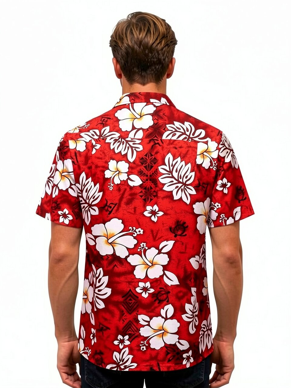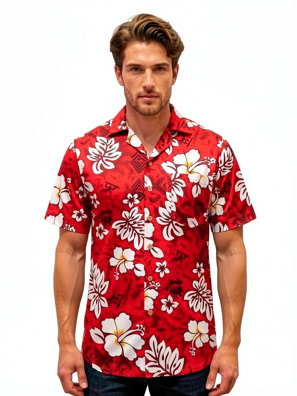 Craving summer, sunshine, and the perfect look? Bring that vacation feeling straight to your wardrobe with the "Classic Flowers (Red)" Hawaiian shirt ! The vibrant red design with classic white hibiscus flowers makes this shirt a true evergreen among tropical styles.