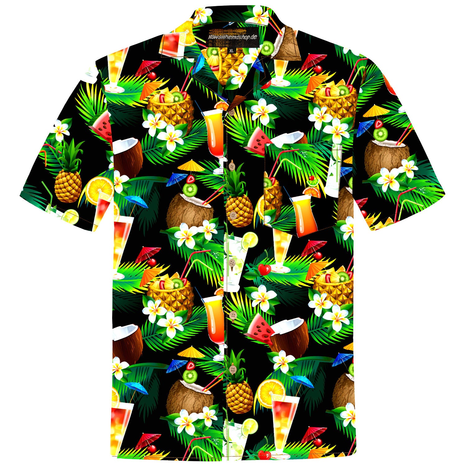 Fancy a tropical flair? The men's Hawaiian shirt brings the colors and spirit of the best beach bars in the world straight into your wardrobe! With bright cocktail illustrations, green palm leaves and an elegant black background, you radiate pure holiday joy - no matter where you are. ๐โจ