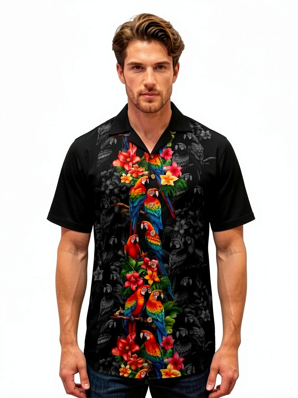 Assicurati subito la tua “Parrot’s Elegance” – probabilmente la camicia hawaiana più elegante di sempre!