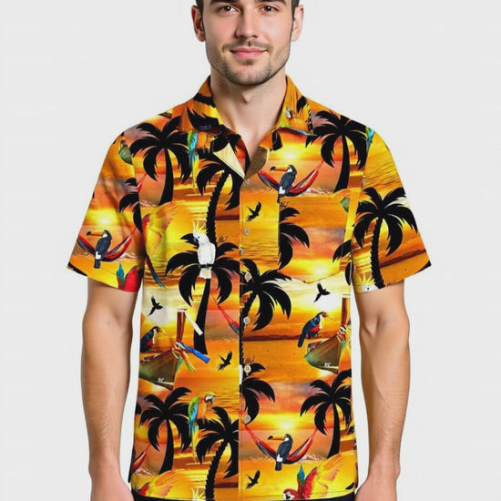 Ob am Strand, bei einer Sommerparty oder in der Freizeit – das „Sunshine Parrots“ Hemd bringt die Farben des Sommers direkt auf deine Haut.